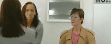 Two women in the ladies' washroom. Only one of them can see her reflection in the mirror.Have a great week, ahead.