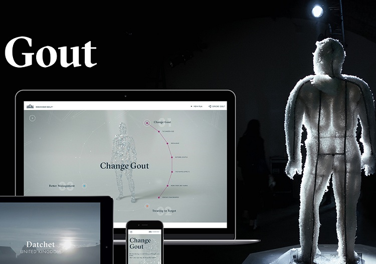How? Clever use of adtech that pithily used a WebGL visualization of a crystalline body representing a gout sufferer. Users could move around hotspots across the site and watch a docu-film to get at bite-size and in-depth information on the disease.