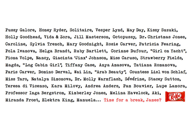 Pussy Galore, Honey Ryder, Octopussy... KitKat urges Bond to take a break