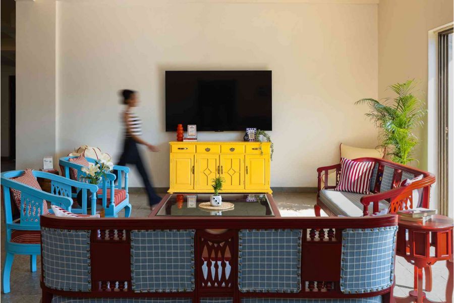 The first edition of Gram’s is located on the shores of Pawna Lake in Lonavala. The property comprises eight villas, including fifteen private rooms and ten dorm rooms capable of accommodating up to 80 guests. Each villa includes a pool and lawn, allowing for activities such as yoga, evening gatherings or informal sessions under the night sky.
