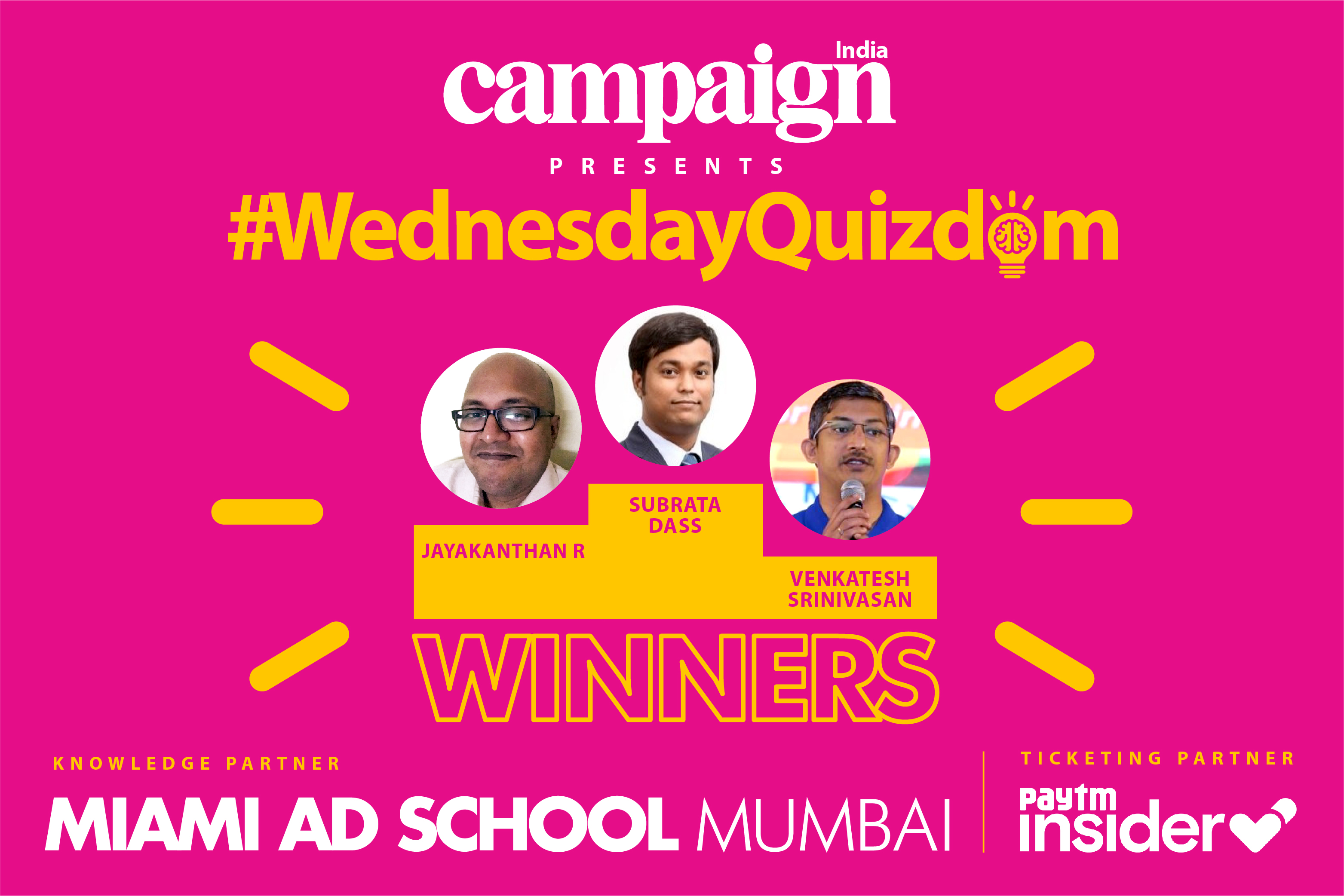 The penultimate edition of Campaign India's #WednesdayQuizdom series was won by Subrata Dass. Dass beat last week's winner Jayakanthan R and the winner of the first edition Venkatesh Srinivasan who finished second and third respectively.