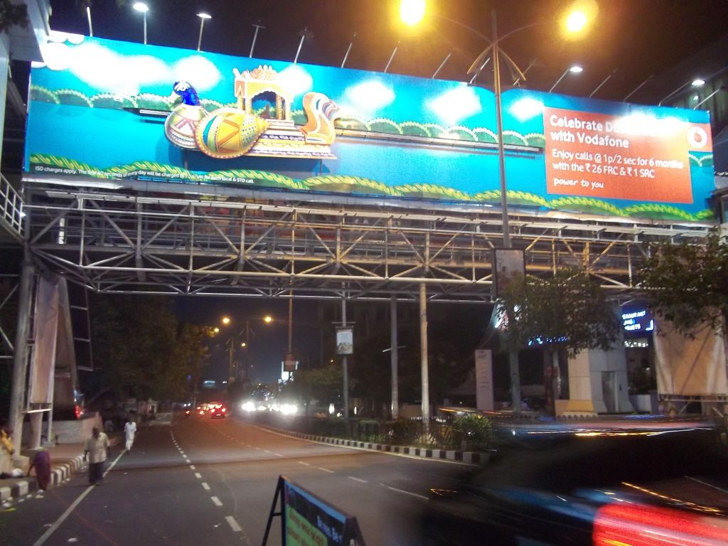 Vodafone sprung another OOH innovation at Hyderabad during the festival of Theppoutsvam (performed on Dussehra). Theppoutsvam is a boat festival during which presiding deities are taken out in a procession on a boat on the river Krishna in the evening. Vodafone released a campaign to amplify the concept of Theppoutsvam of Vijaywada Kanaka Durga – an innovation features the Theppoutsvam Boat moving within an OOH site, on the Foot over Bridge (FOB) at Banjara Hills, Hyderabad.